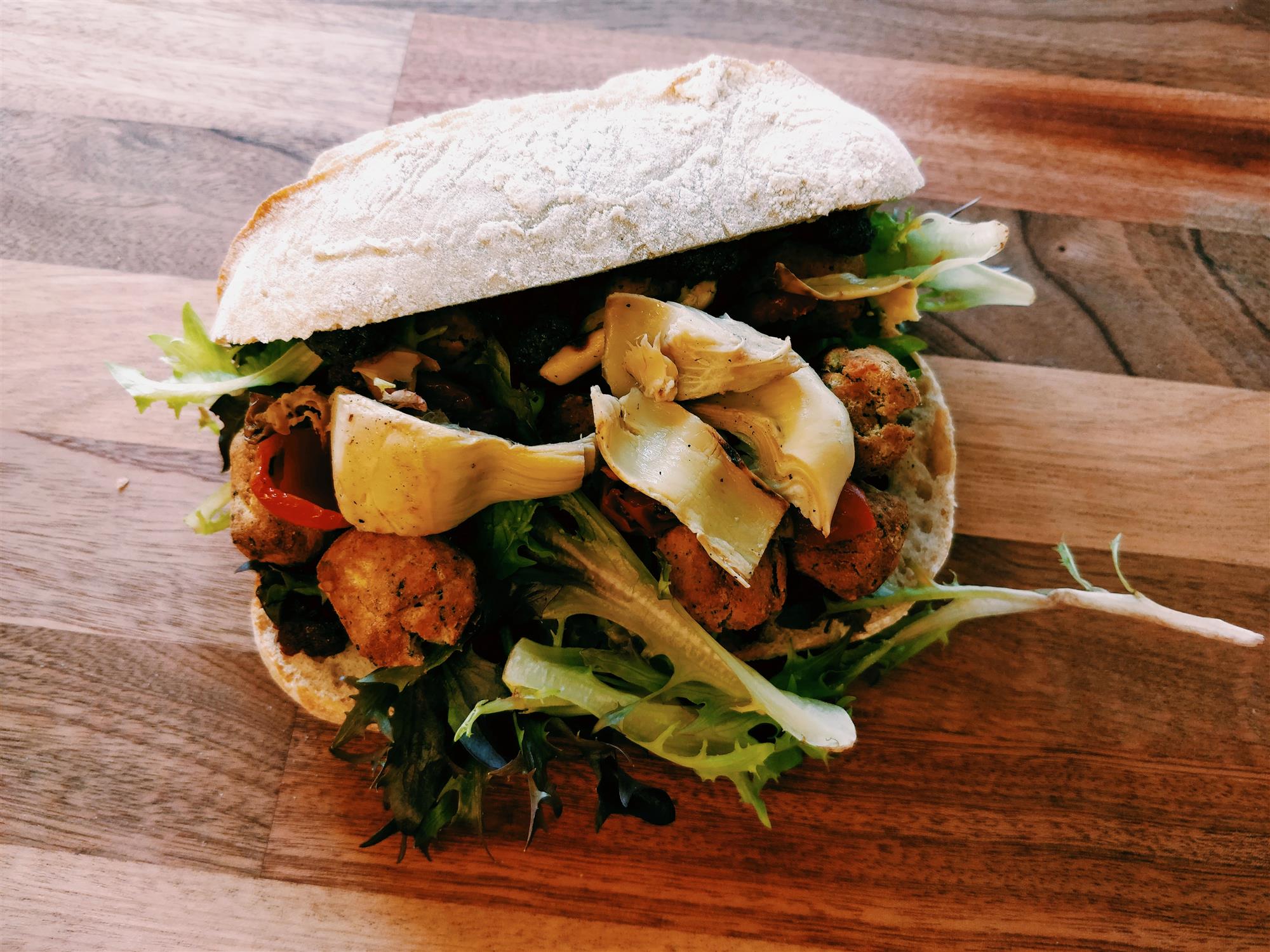 Her bruger vi de samme råvarer som i vores tapas – fisk, charcuteri, oste, kylling og veganske specialiteter – blot samlet i en frisklavet sandwich.