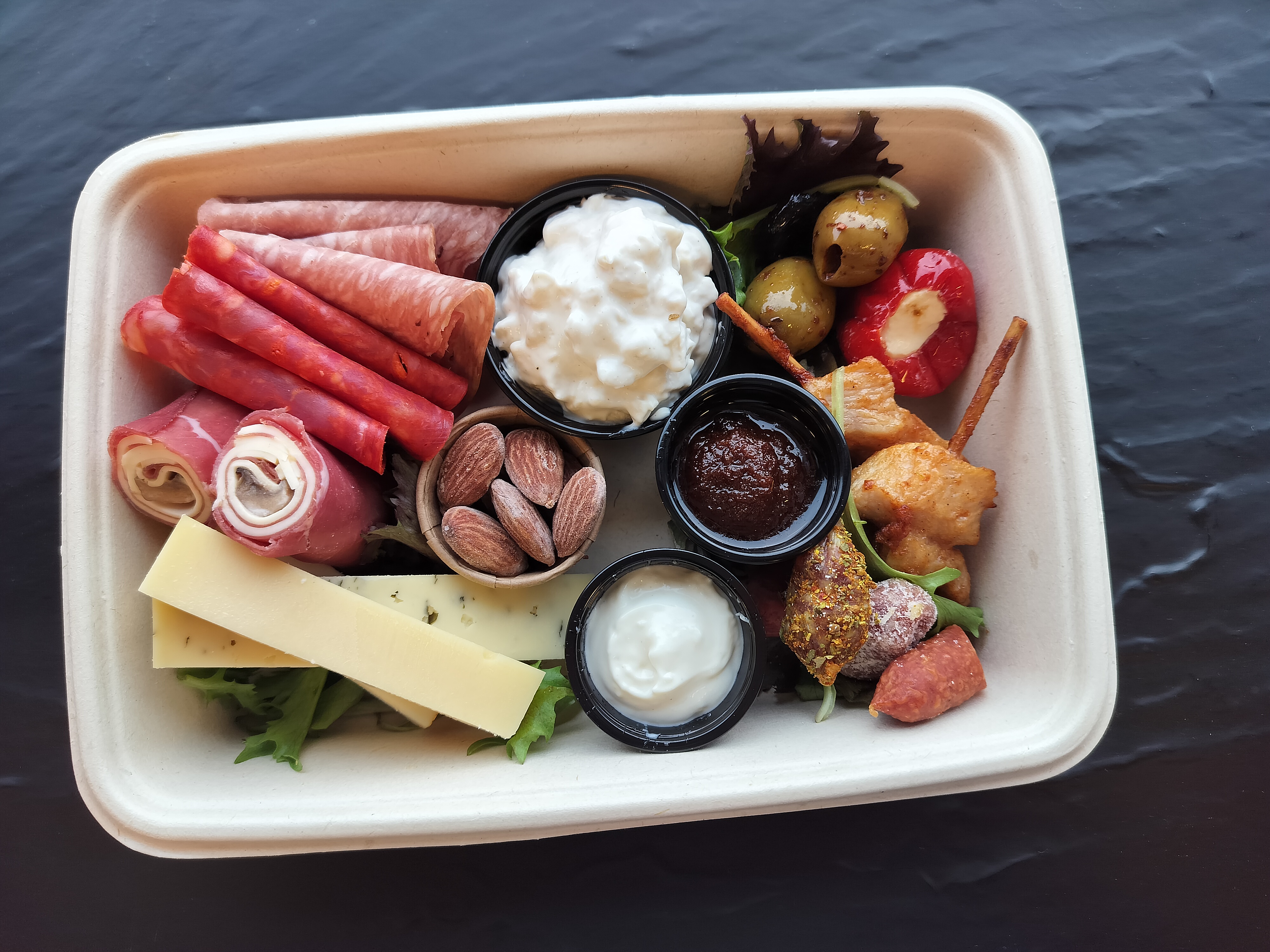 3 varianter som kan være alt fra Mini salami, Tortilla slices, Roulader, Salater, Fisk, Kullingespyd,