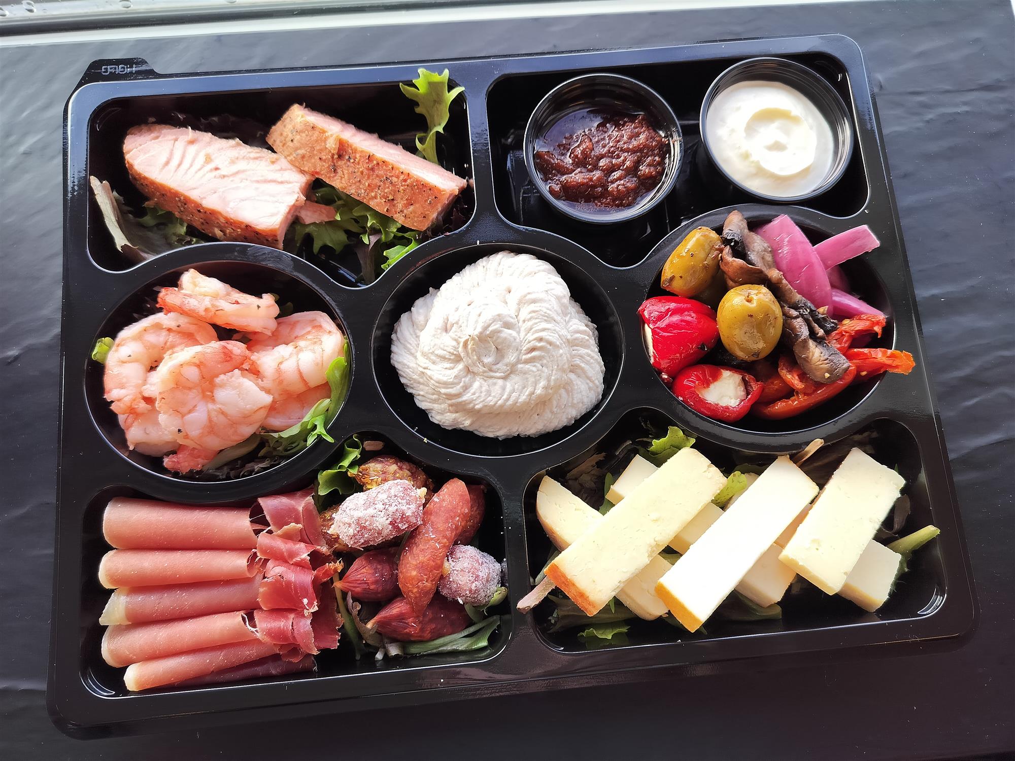 1️⃣ Sammensæt din egen nytårs-tapasbakke fra listen på produktet.